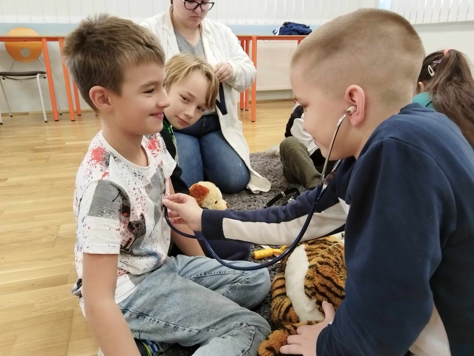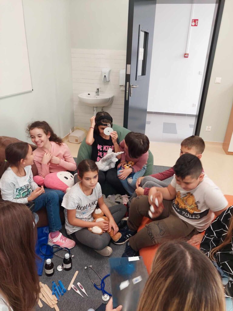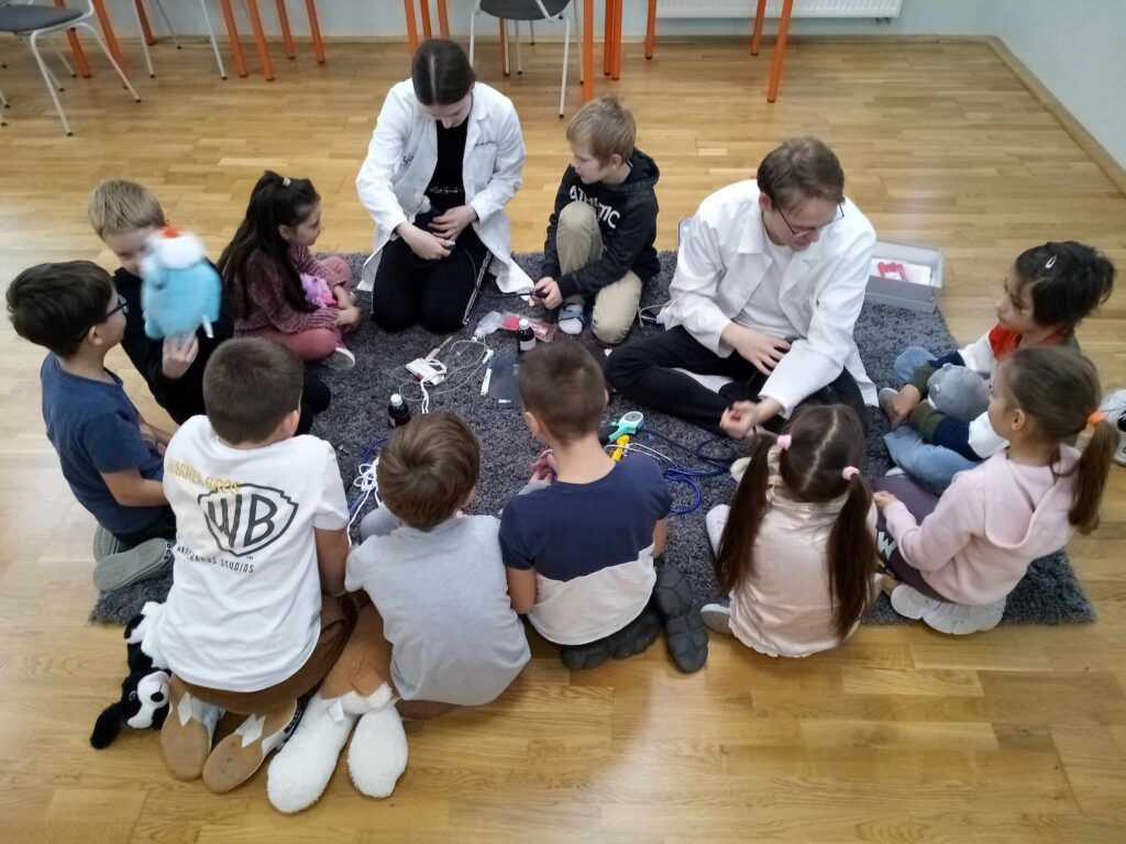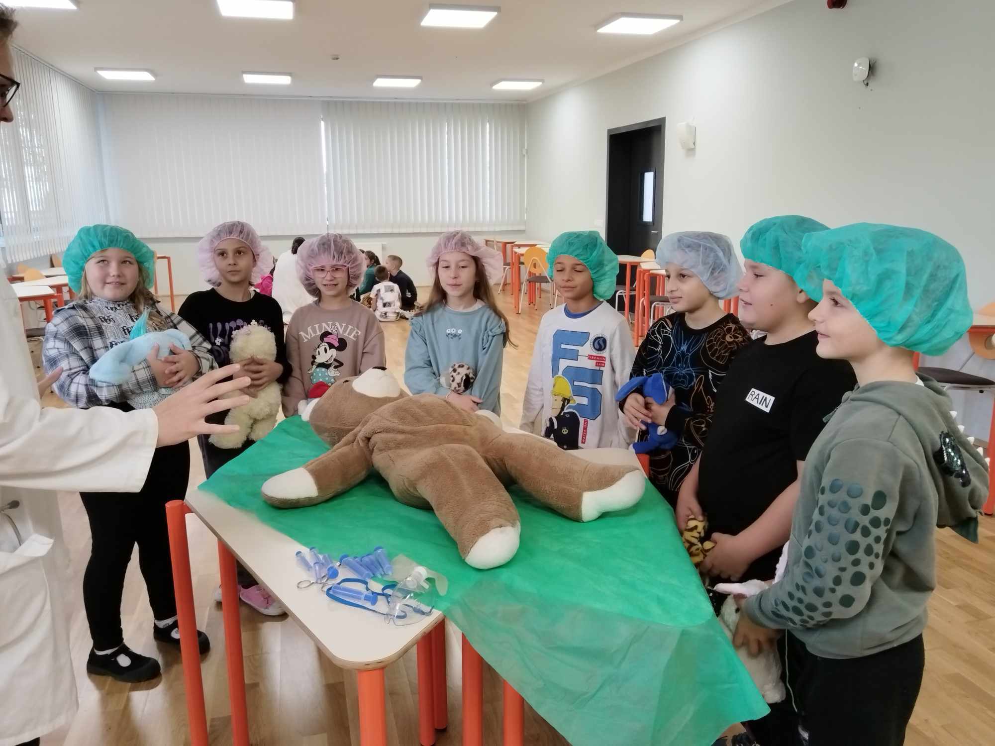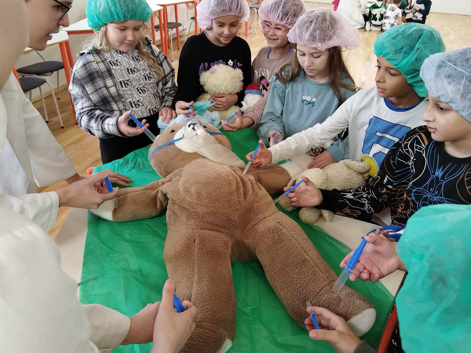 2023.11.13-án a Teddy Maci Kórház Pécs „orvosai” látogatták meg alsó tagozatos tanulóinkat. A játékos program keretében a gyerekek megnézhették, kézbe vehették és ki is próbálhatták a gyermekrendelőben előforduló eszközöket. „Teddy doktor és doktor nénik” segítségével együtt megvizsgálták és meggyógyították plüss kedvenceiket. A Teddy Maci Kórház különleges felszereléseinek köszönhetően, a gyermekek, speciális öltözékben, egy „maci-műtétet” is elvégezhettek, miközben a testben rejtőző szervekkel és azok működésével is megismerkedhettek. Köszönjük szépen a Teddy Maci Doktorainak ezt a fantasztikus programot!