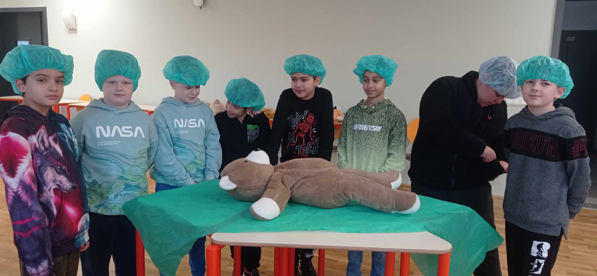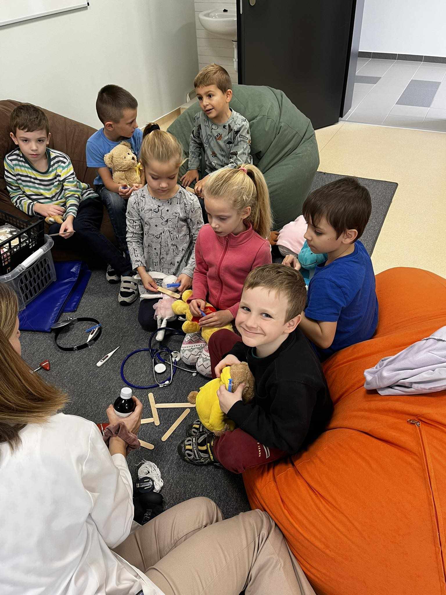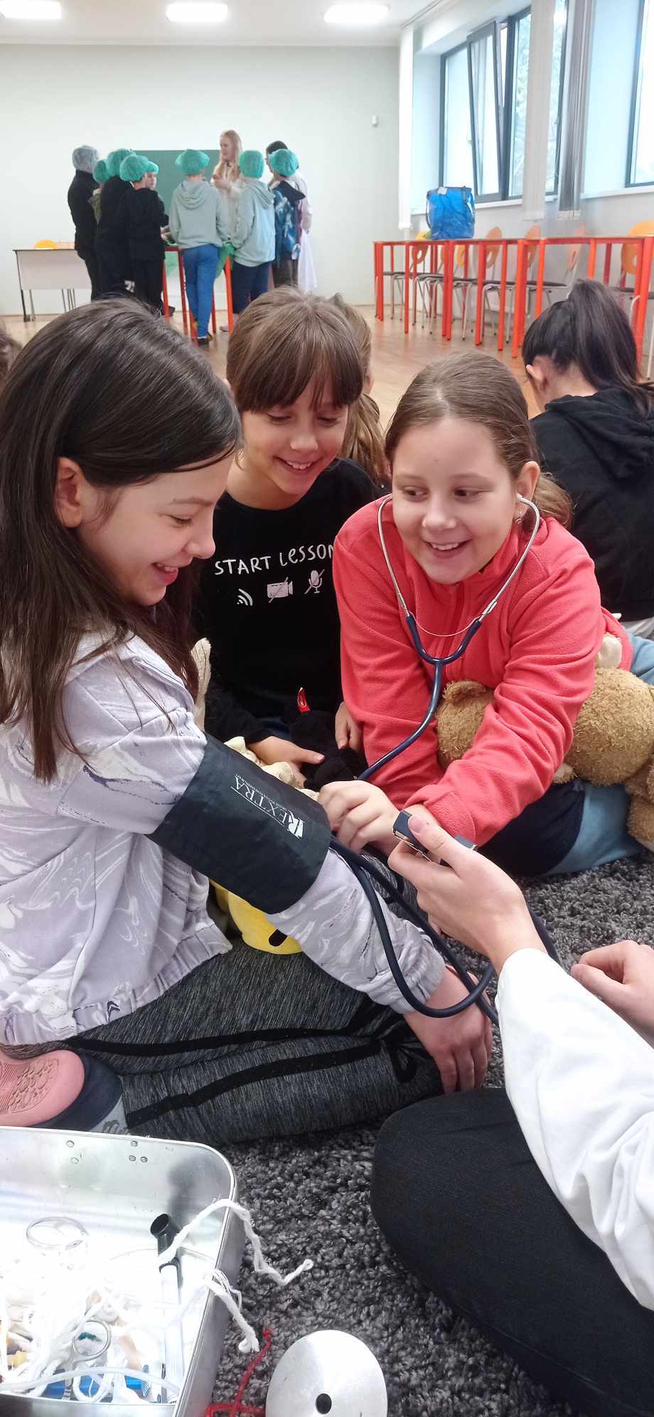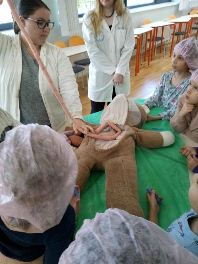 2023.11.13-án a Teddy Maci Kórház Pécs „orvosai” látogatták meg alsó tagozatos tanulóinkat. A játékos program keretében a gyerekek megnézhették, kézbe vehették és ki is próbálhatták a gyermekrendelőben előforduló eszközöket. „Teddy doktor és doktor nénik” segítségével együtt megvizsgálták és meggyógyították plüss kedvenceiket. A Teddy Maci Kórház különleges felszereléseinek köszönhetően, a gyermekek, speciális öltözékben, egy „maci-műtétet” is elvégezhettek, miközben a testben rejtőző szervekkel és azok működésével is megismerkedhettek. Köszönjük szépen a Teddy Maci Doktorainak ezt a fantasztikus programot!