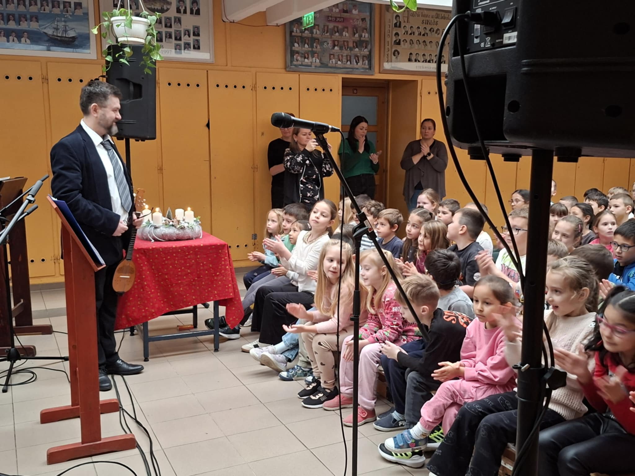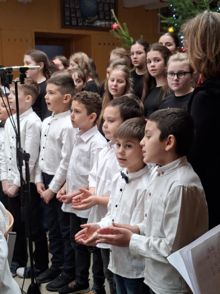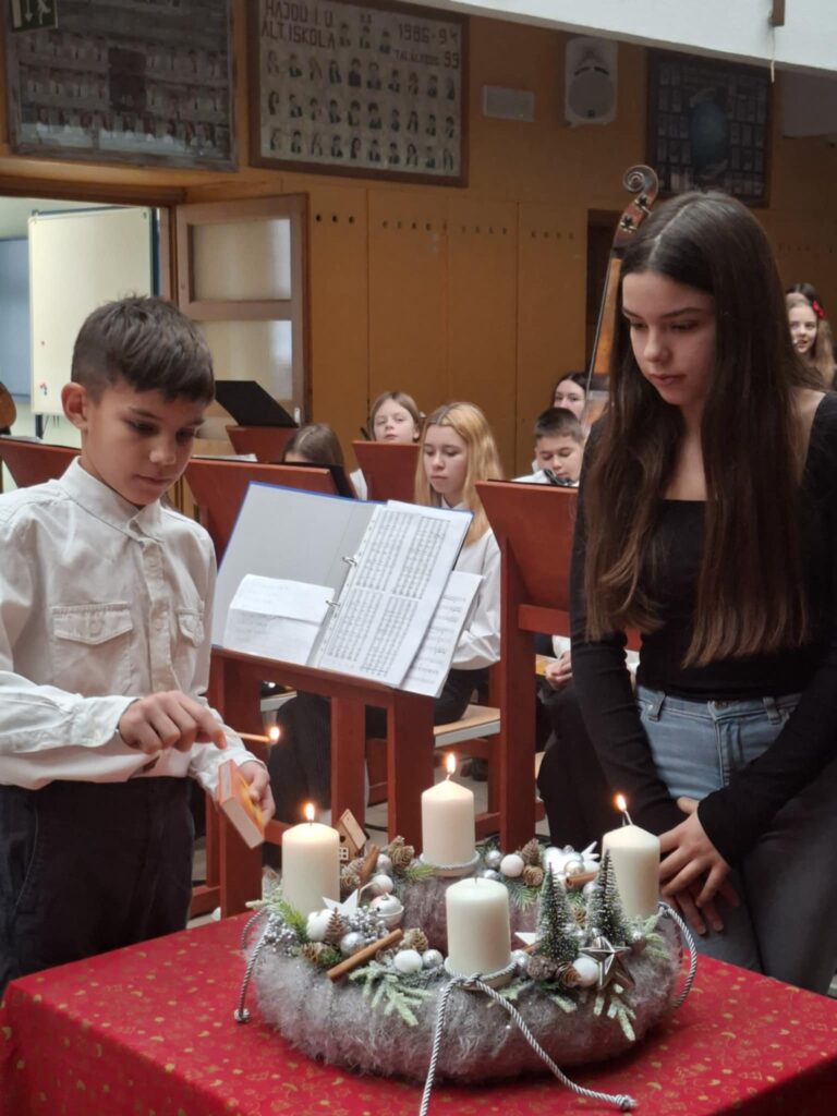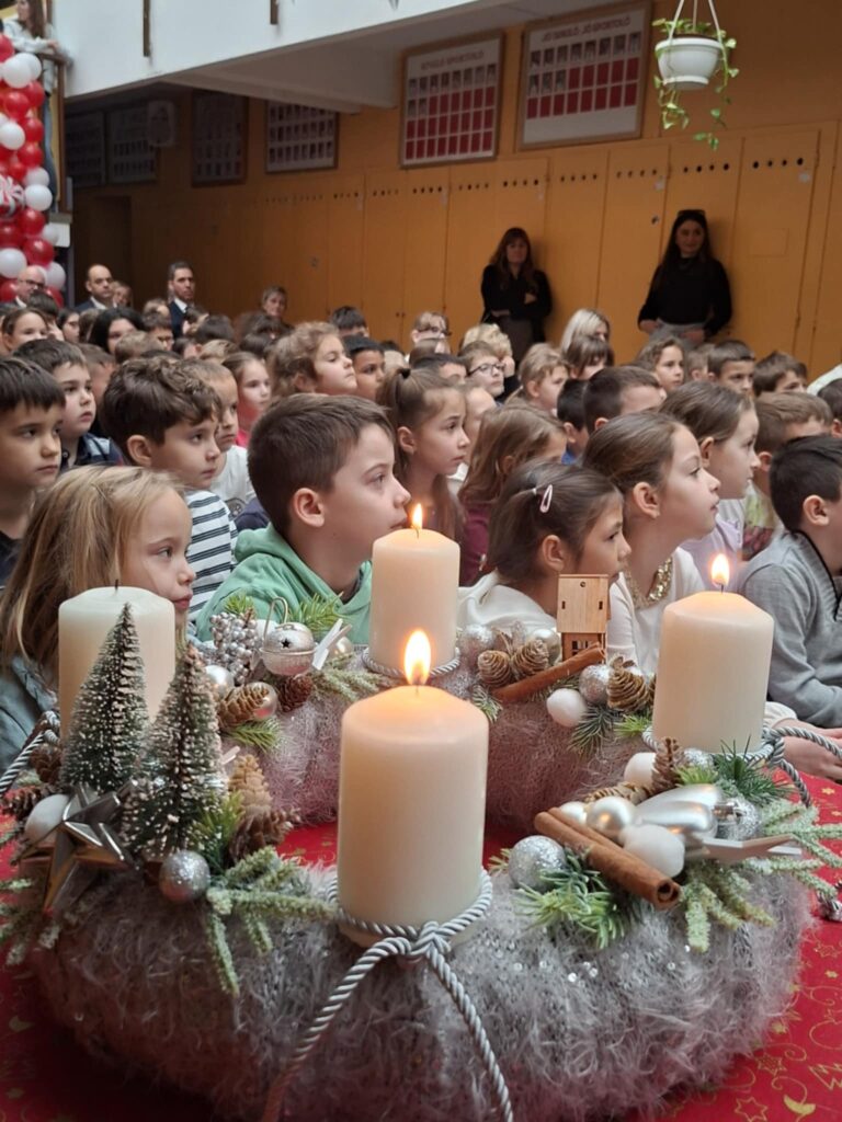 A mai napon ünnepélyesen meggyújtottuk a harmadik adventi gyertyát is az öröm és boldogság jelképeként. A gyertya jelentése valósággá vált: öröm és boldogság járta át a Kanizsait, hiszen újra velünk voltak miholjaci barátaink, sokadik alkalommal hangolódhattunk együtt a karácsonyra. A donji miholjaci August Harambašić Általános Iskola tamburazenekara és énekkara lepett meg bennünket csodálatos karácsonyi koncertjükkel. Horvátos tanulóink horvát versekkel üdvözölték a vendégeket, majd a műsor végén a miholjaci kórussal együtt énekelték el a Csendes éjt horvát nyelven. A horvát karácsonyi dalok elvarázsolták a közönséget, vártuk már ezt a napot.