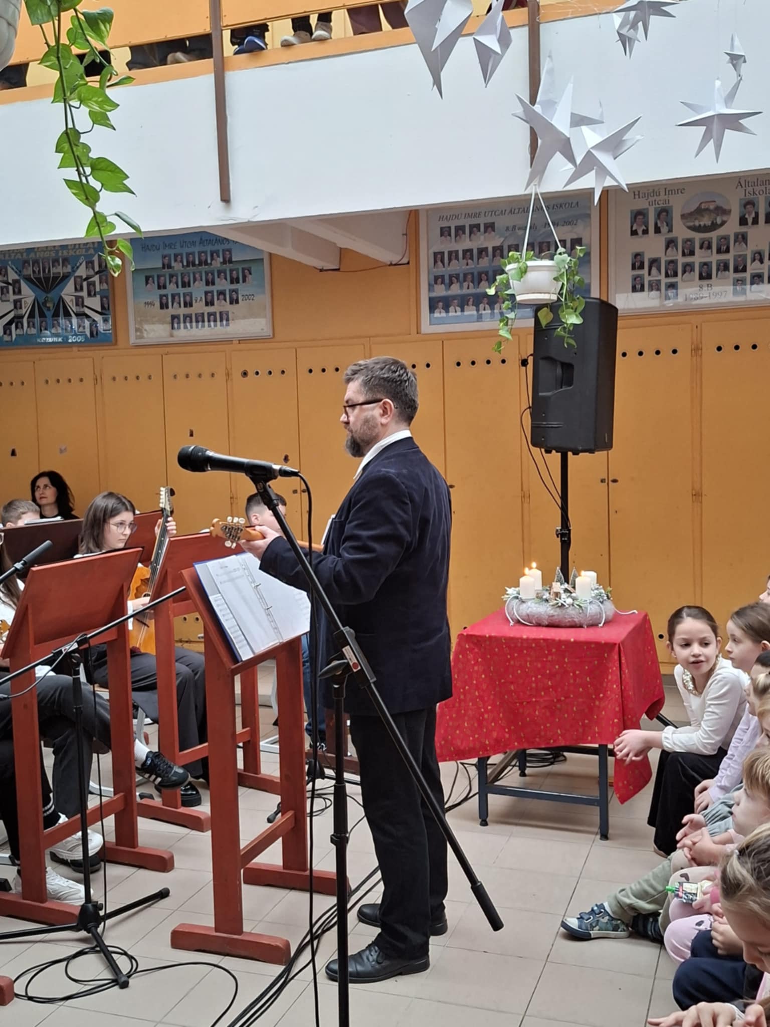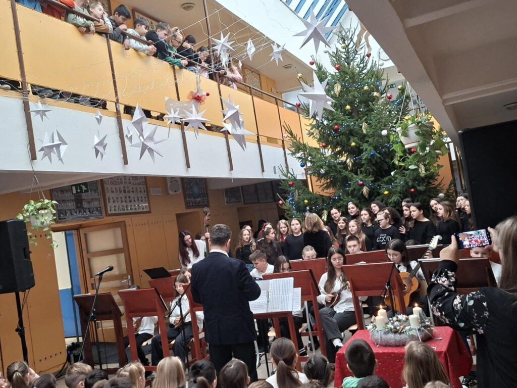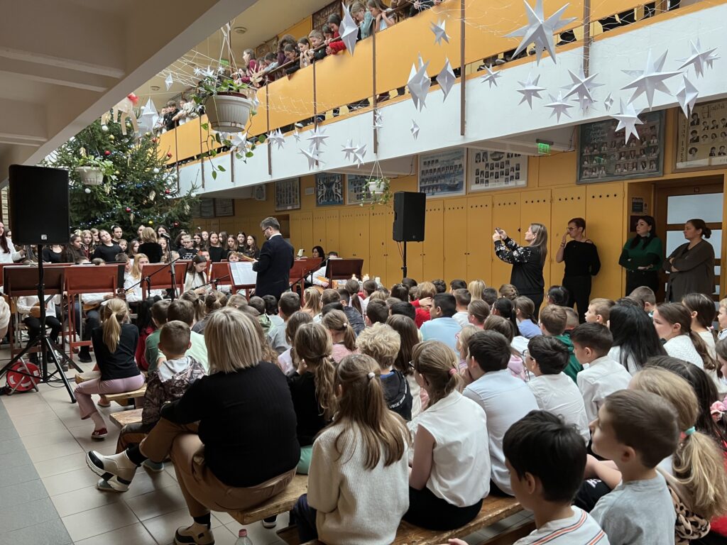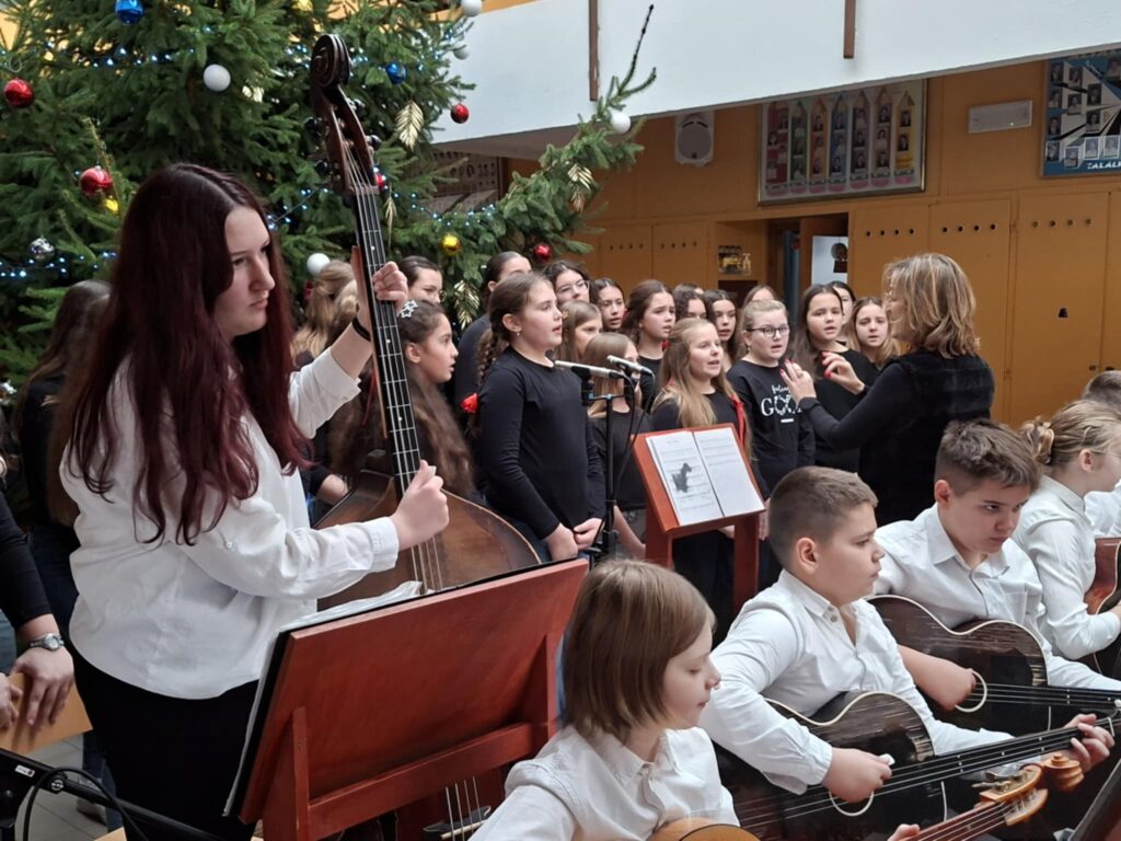 A mai napon ünnepélyesen meggyújtottuk a harmadik adventi gyertyát is az öröm és boldogság jelképeként. A gyertya jelentése valósággá vált: öröm és boldogság járta át a Kanizsait, hiszen újra velünk voltak miholjaci barátaink, sokadik alkalommal hangolódhattunk együtt a karácsonyra. A donji miholjaci August Harambašić Általános Iskola tamburazenekara és énekkara lepett meg bennünket csodálatos karácsonyi koncertjükkel. Horvátos tanulóink horvát versekkel üdvözölték a vendégeket, majd a műsor végén a miholjaci kórussal együtt énekelték el a Csendes éjt horvát nyelven. A horvát karácsonyi dalok elvarázsolták a közönséget, vártuk már ezt a napot.
