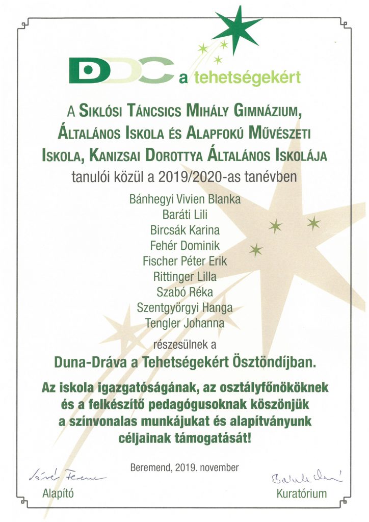 Büszkék vagyunk a Duna-Dráva Tehetségösztöndíj pályázatán nyertes tanulóinkra!