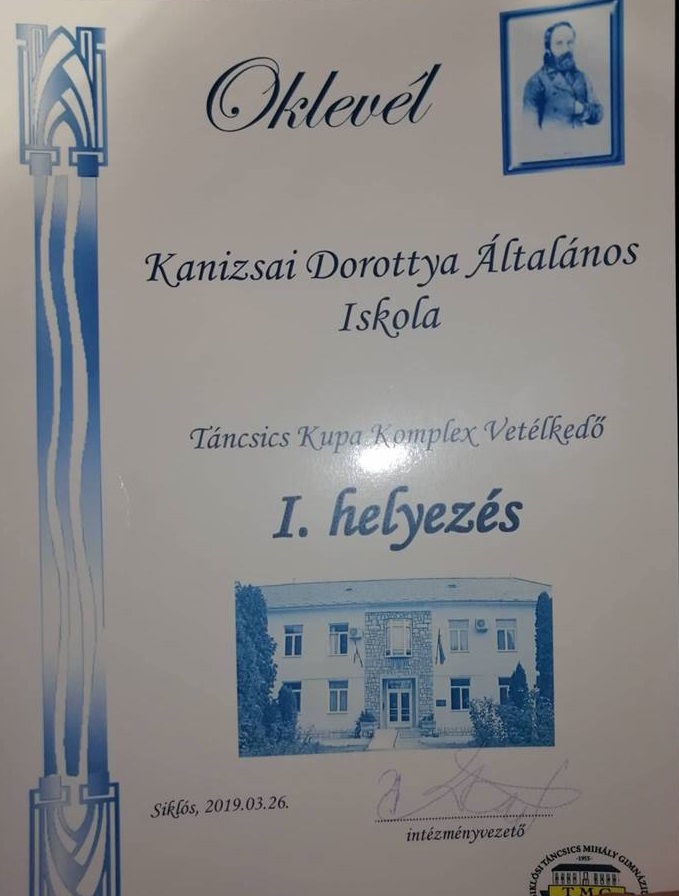Március 26-án a Táncsics Kupa Komplex Vetélkedőn – melyet a Sikósi Táncsics Mihály Gimnázium szervezett – iskolánk csapata I. helyezést szerzett. „Táncsics Kupa Komplex Vetélkedő” bővebben