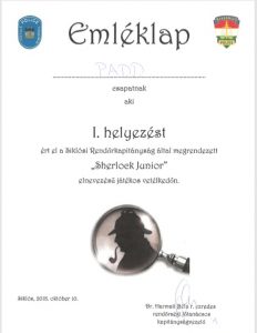7-8. osztályos korcsoportban : Szávuly Anna I. hely, Spitzer Frida II. hely, Szabó Réka III. hely.