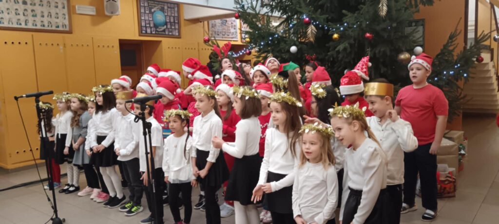 Az alsós kórus Selymesné Todenbier Edit irányításával szép, karácsonyi dallamokat hozott, az 1. b osztály angolosai pedig vidám betlehemes dallal lepték meg a közönséget Balogh Alíz felkészítésével. A műsor végén maga a Mikulás is megérkezett, nagy piros zsákját cipelve. Senki nem maradt meglepetés nélkül, a Mikulás minden kis gyermekre és dolgozóra gondolt.