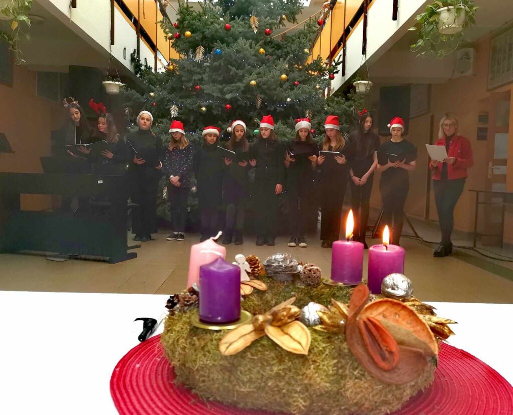 Adventünk első gyertyájának meggyújtásakor megálltunk, magunkba szálltunk, átadtuk magunkat az ünnepi érzésnek. Énekeltünk, örültünk és meghatódtunk. Könnyeket csalt szemünkbe tanítványaink előadása. Az alsós és felsős kórusunk csodás éneke mellett Rosinger Katalin, Tili Maja és Zichy Mária Terézia zongorajátékával kápráztatott el, Tamás Júlia klarinéton, Bánfalvi Kamilla hegedűn, Ősi Janka fuvolán játszott. Büszkék vagyunk gyermekre és pedagógusra egyaránt, decemberünk varázslatosnak ígérkezik.